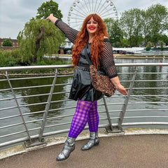 Przygotuj się na oczarowanie naszymi nowymi rajstopami Checkmate. Te żywe fioletowe rajstopy o mieszanym denrze mają zabawne wzory gingham inspirowane zabawą na wesołym miasteczku. Są super rozciągliwe i nie rolują się, nie wbijają ani nie zwisają, zapewniając wygodę i styl przez cały dzień.