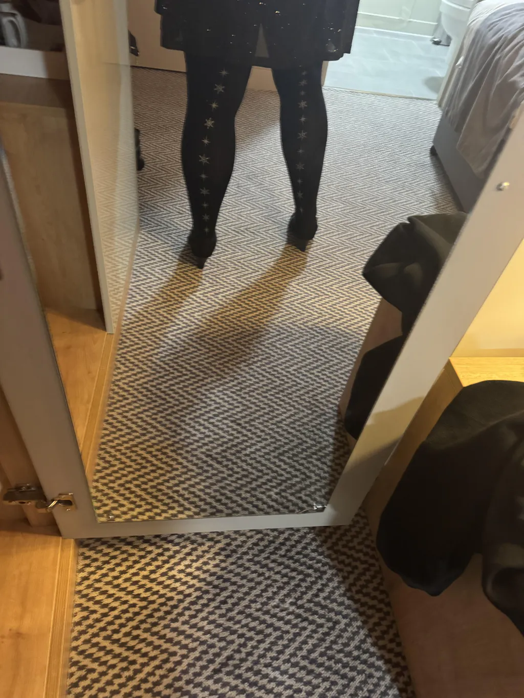 ✨ 80 denier black base with glitter stars and snowflakes creating a back seam