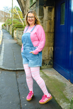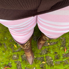 The sweetest, softest 80 denier tights with a creamy white base and delicate pastel pink diagonal stripes inspired by our Angel Delight shade. Gentle, charming, and full of whimsical wonder, they bring a touch of sweetness to even the simplest winter outfit.