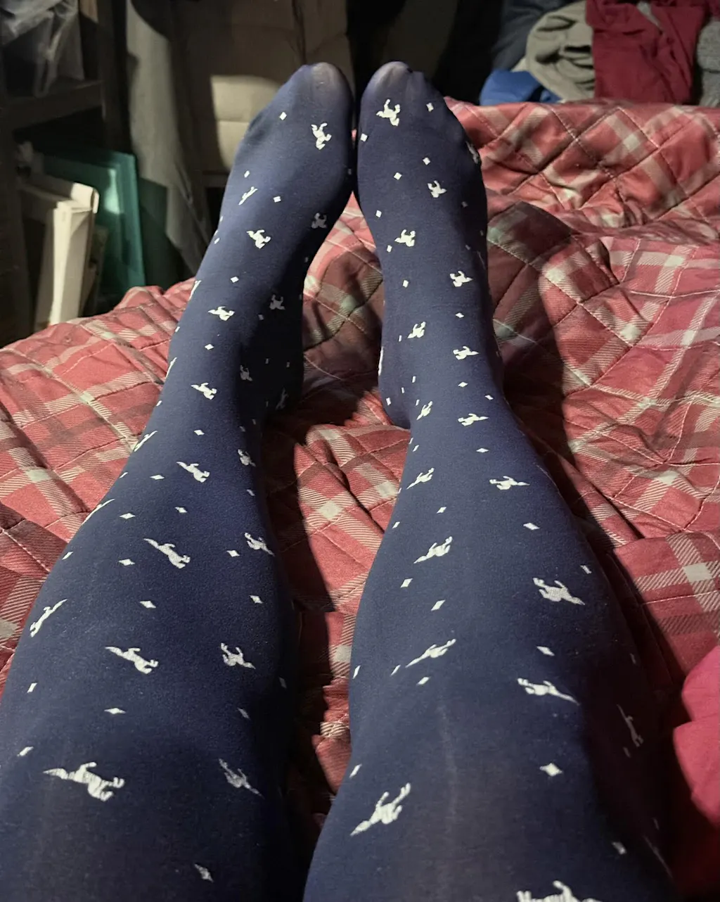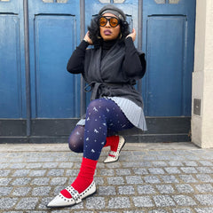 Dinky Horses are designed to carry that energy into your everyday. They are warm but breathable, opaque without feeling heavy, and soft with just the right amount of stretch to move with you as you stride, sprint or dance your way through the day. The Ocean Depths blue is rich and grounding, while the playful print adds a spark of joy and personality to every outfit.