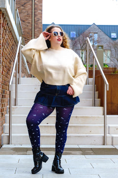 Dinky Horses are our 80 denier statement tights made for momentum, movement and leaping boldly into what comes next. Set on a deep midnight sea blue base we call Ocean Depths, these tights are scattered with playful galloping horses and diamond details, a joyful nod to the Year of the Fire Horse and the energy of forward motion.