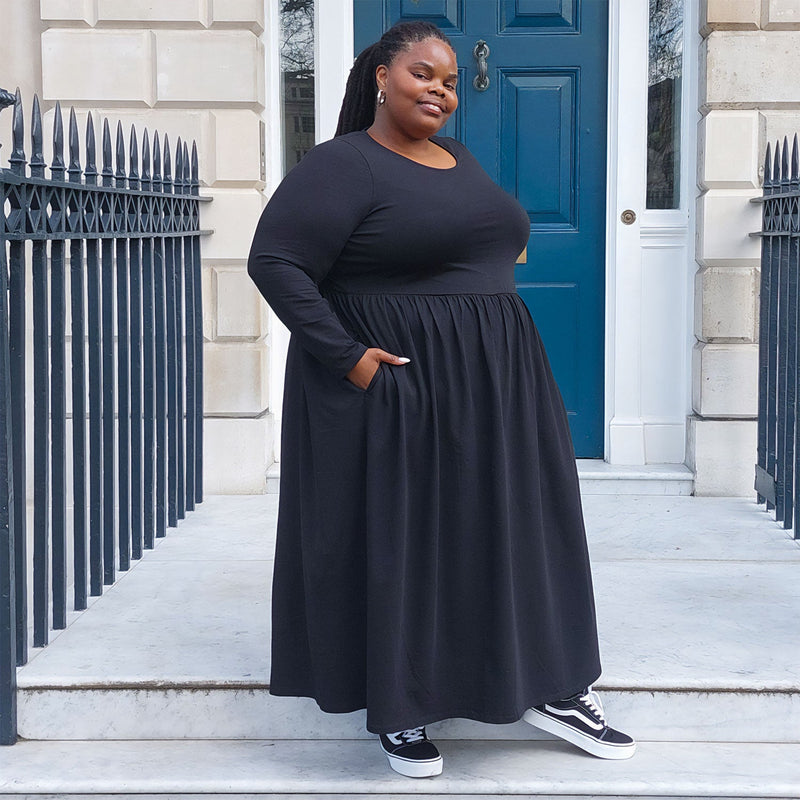 Elegant and unbelievably comfortable, the Long Sleeve Maxi Dress in Black is designed for those days when you want to feel completely at ease in what you’re wearing. Made from beautifully soft organic cotton jersey, it’s a piece that feels just as comfy wandering the moors like Cathy from Wuthering Heights, or lounging on the sofa watching a movie, as it does at an important work meeting or formal occasion.