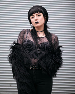 Lightweight and breathable, it feels as good to wear as it looks. Pair it with a skirt or trousers for dark elegance, or add one of our body harnesses to push the look further.