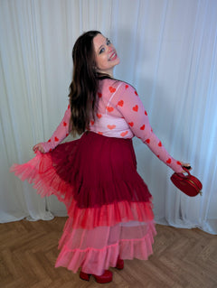 Colour, movement and pure joy. The Ombre Mesh Maxi Skirt in Pirouette flows through three unapologetically bold pink shades, starting with Mini Milk, a soft baby pink at the hem, melting into Lullaby, a hot pink that brings the drama, and finishing with Pirouette, a bright raspberry red that sits proudly at the waist.