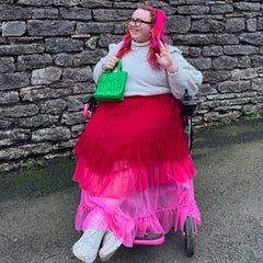 Style it with a matching mesh top for full colour chaos, a cosy knit and trainers for everyday magic, or dress it up with heels for dancing through life. This skirt is for anyone who loves clothes that say exactly how they feel on the inside.