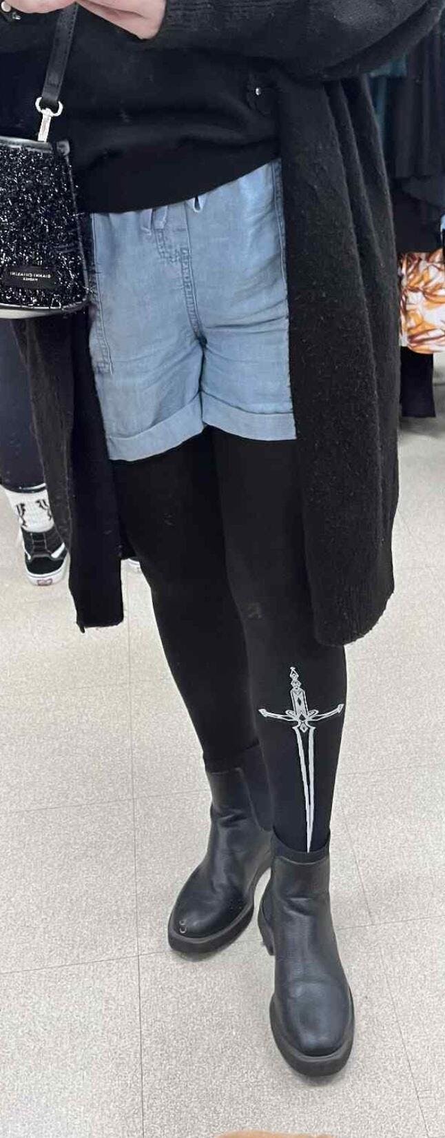 Sometimes, one sharp detail is all you need. The Midnight Executioner tights feature a bold sword design running down the front of one leg and the back of the other for a flash of danger. It’s a simple, powerful look for anyone who wants their style to have a bit of an edge.