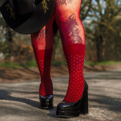 - The 'Cuff': A solid, opaque burgundy sock band sits perfectly above the dotted section, creating a striking visual break