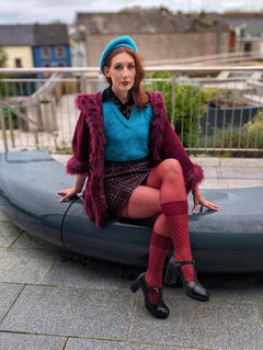 - The Upper: The tights transition into a gorgeous sheer burgundy upper, providing a comfortable fit and a subtle wash of colour up the leg.