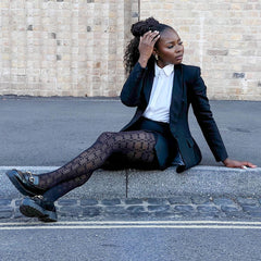 Like a secret code for your legs. Lock In features an all-over pattern of repeating rectangular blocks that gives a cool, digital-inspired vibe perfect for a street style look. These are mixed-denier tights, so the sheerer base makes the opaque block pattern really pop. The pattern is knitted right in, meaning it moves and stretches with you without ever warping or fading.