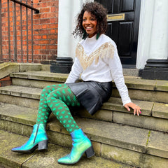 Com shamrocks verdes tricotados numa base Hit the Bottle, estes collants são o complemento perfeito para o seu guarda-roupa do Dia de São Patrício. Confortáveis, elásticos e concebidos para se adaptarem realmente, estes collants de 80 denier sãoultra-utilizáveis durante todo o ano e foram concebidos para durar realmente.