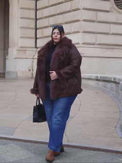 Prepare-se para se apaixonar pela jaqueta Amelia Aviator em pele sintética castanha. Esta jaqueta aviador mais longa é confeccionada em couro sintético PU vegan suave na mais deliciosa cor castanha escura e forrada da gola à bainha com a pele sintética mais macia e aconchegante que já criámos. Basta um toque para entender por que ela transmite uma sensação de puro luxo ao envolvê-lo.