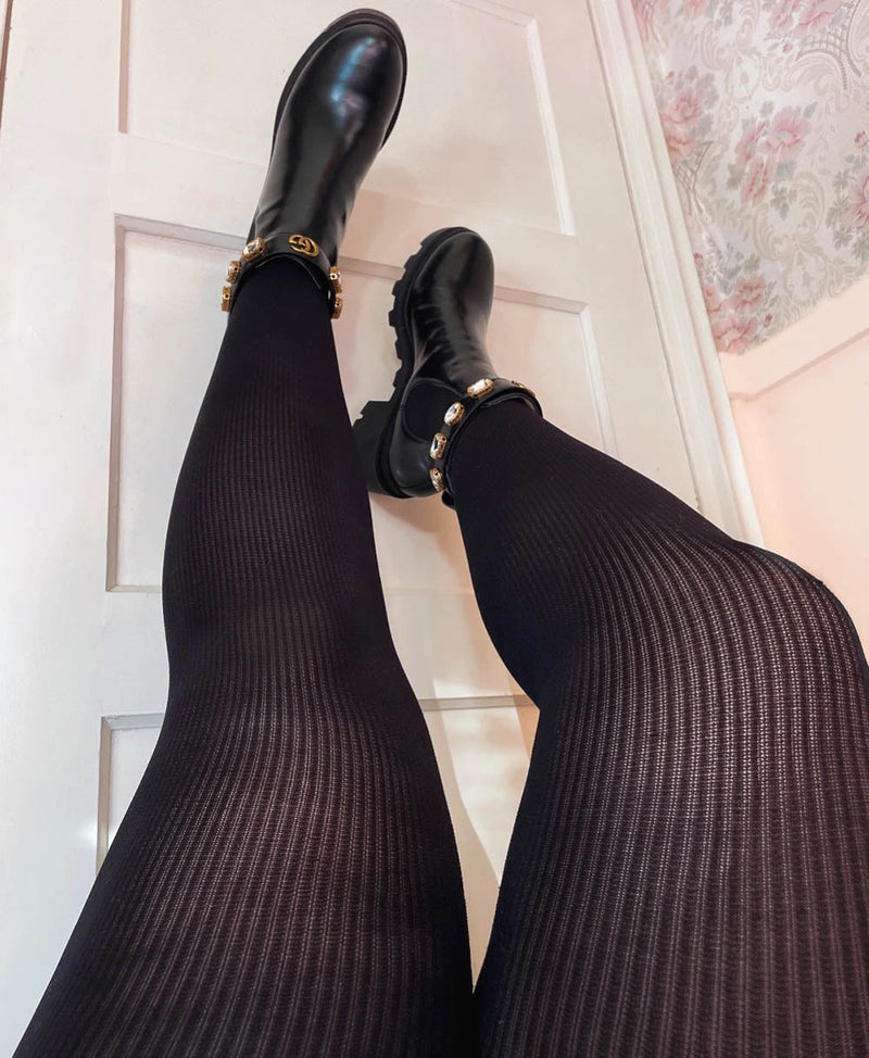 Com a sua malha canelada que mantém o calor, estes collants oferecem um equilíbrio entre aconchego e estilo para os dias frios.