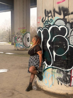 É suave, confortável e acompanha os seus movimentos em vez de se agarrar, proporcionando-lhe aquele momento perfeito de pirueta, quer esteja a sair para o dia ou apenas a girar porque se sente bem. A combinação de cores Cairn apresenta uma base preta profunda com riscas tartan brancas e cinzentas para um visual elegante e minimalista.