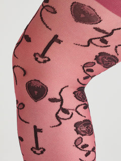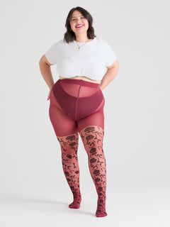 Transborda elegância escura e sexy com os deslumbrantes collants com padrão Rose Key. Com uma base de malha cor de vinho rica com um intrincado padrão preto de rosas, chaves e videiras retorcidas, estes collants com padrão são O toque de romance gótico para qualquer conjunto. Rose Key são a chave para desbloquear um visual maravilhosamente assombroso e infinitamente cativante.