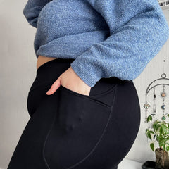 Totalmente opacas e à prova de agachamento (nada de cuecas à mostra), muito elásticas e confortáveis, num tecido Ponte Roma adorável, espesso e sustentável. Com verdadeiros bolsos funcionais que permitem guardar todos os objectos essenciais sem que as leggings caiam! Elástico super épico, redução de borbotos e um cós largo que não se fixa e não escorrega. Nós adoramo-las e esperamos que também as adore.