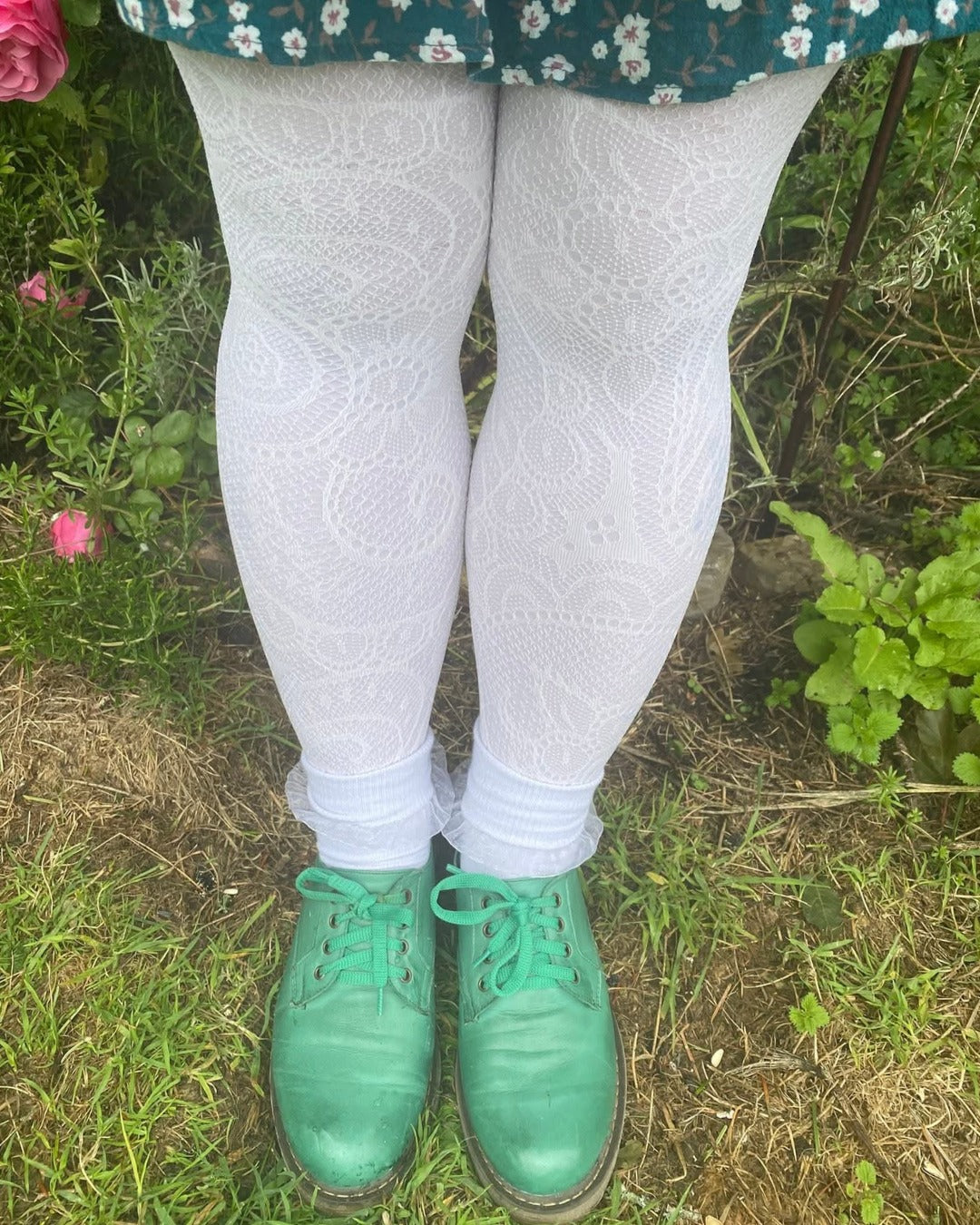 Nu kommer den roliga delen. Kasta ett par nätstrumpor eller mönstrade tights i blandad denier över toppen för att lägga till lite textur. Ett klassiskt svart eller vitt på en färgad bas är alltid en vinnare, men ett färgglatt nät i en kontrasterande färg ser också fantastiskt ut!