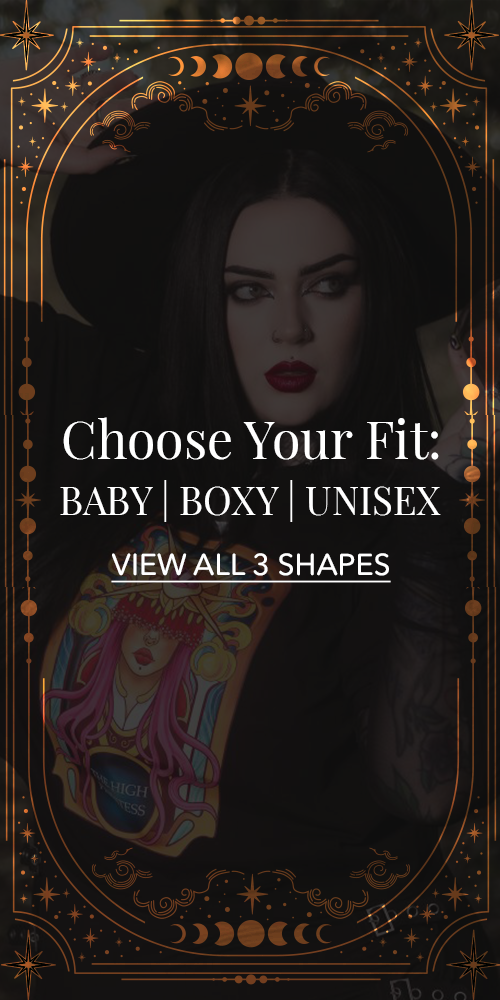 Hitta din arcana i våra supermjuka tees i ekologisk bomull: välj hopp med The Star Unisex T-shirt, eller klassisk komfort med den överdimensionerade Judgement Unisex Tee. För nya silhuetter, satsa på positivitet med The Sun Baby Tee (en figurnära, croppad modell) eller utforska din intuition med The Moon Baby Tee. Om du dras till den nya croppade Boxy-formen, välj mystik med High Priestess eller dansa i skuggorna med The Devil Boxy Tees.