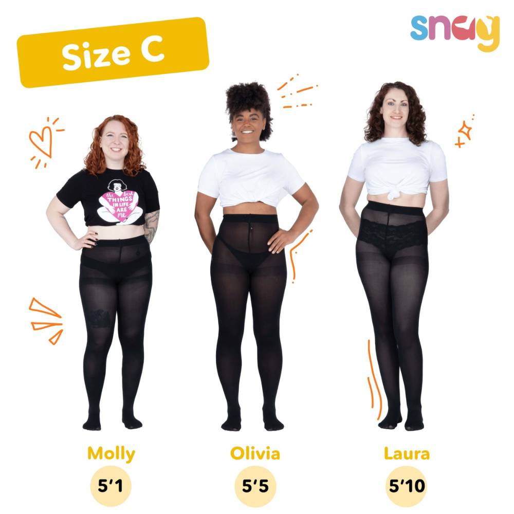 Se hur våra strumpbyxor passar människor i alla storlekar.