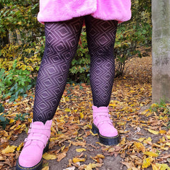 Säg hej till våra Diamond Age-tights. Dessa svarta tights har ett stickat diamantmönster för när du känner för att visa lite hud eller bara vill ha ett lager. Dessa tights är starka och stegtåliga, de är riktigt slitstarka och byggda för att hålla så att du kan bära dem om och om igen. Dessutom är de tillverkade för att passa alla kroppar.