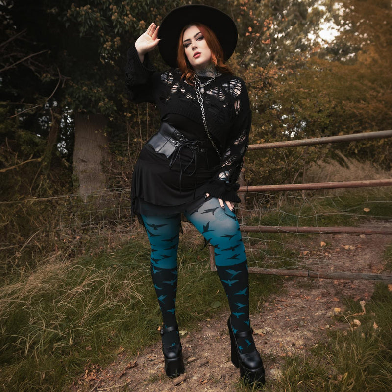 The Birds Tights är den perfekta dramatiska accessoaren för din inre häxa. Det här är inte bara strumpbyxor, det är ett stycke gotisk berättarkonst för dina ben.