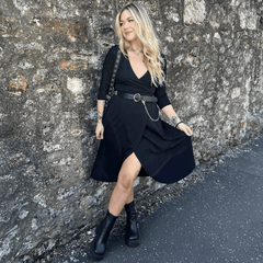 Vi har gett omlottklänningar Snag . Den här svarta omlottklänningen är utformad för att passa vårt inkluderande storleksutbud och se fantastisk ut, och är en riktig omlottklänning med ett insytt elastiskt bälte och generösa proportioner så att den omsluter hela vägen runt. Den är tillverkad i mjuk bomull som andas, har en böjd fåll, 3/4-långa stretchiga ärmar och djupa funktionella fickor. Den kan bäras året runt och kläs upp eller ner för alla tillfällen, och den ser dessutom fantastisk ut tillsammans med Snag .
